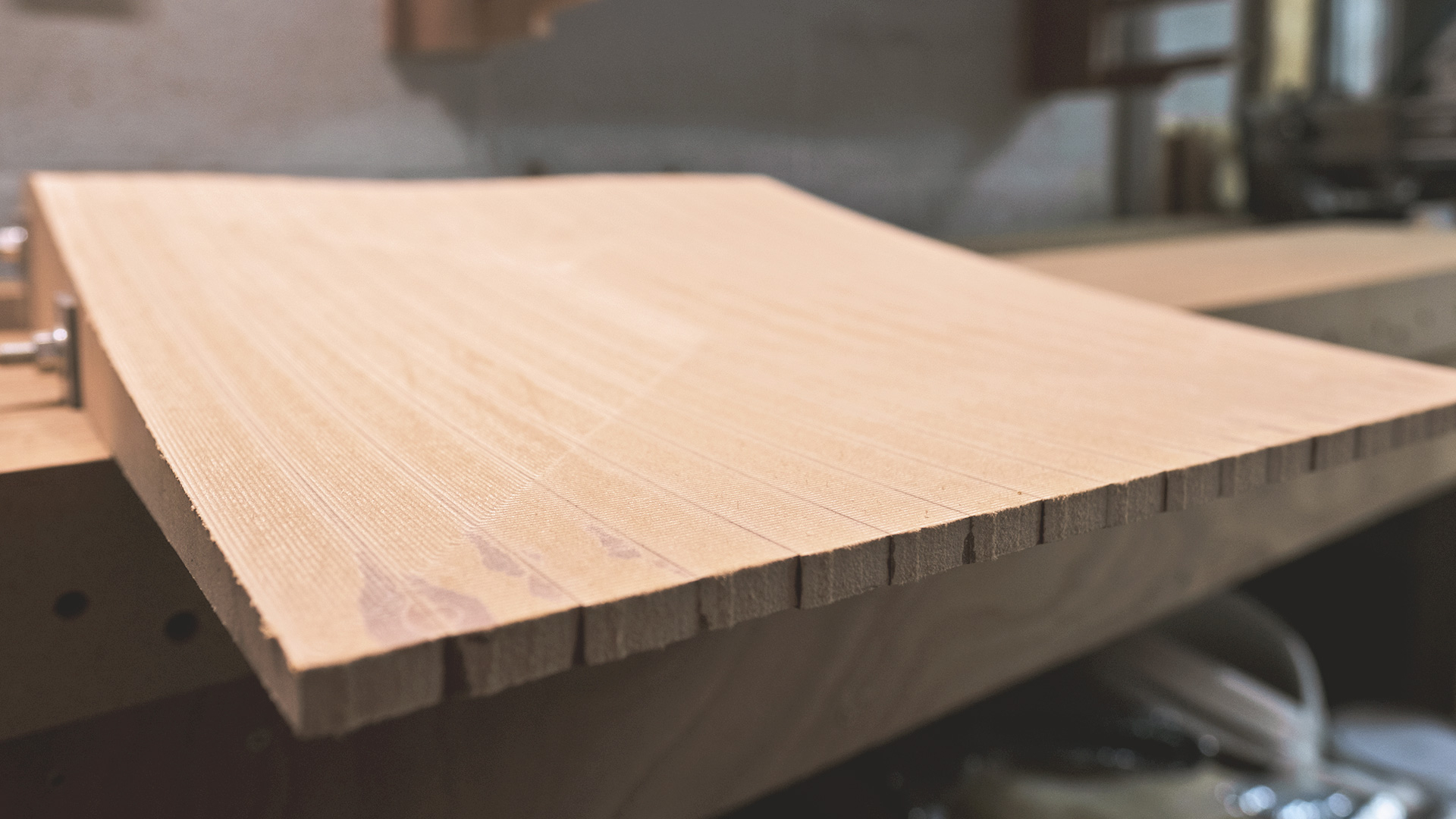 read moreWe select natural woods like ash for stiffness, poplar for balanced flex, or paulownia for lightness. Blanks are cut with our bandsaws and planed to exact thicknesses using the Wadkin planer. Sidewalls are shaped to fit precisely, setting the stage for reliable flex and torsion.